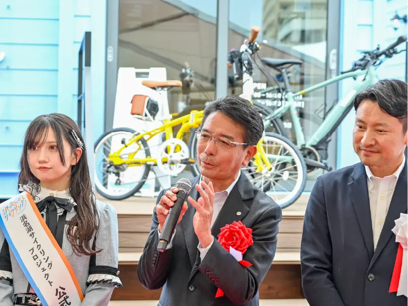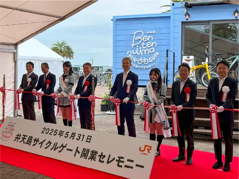 JR弁天島駅から徒歩3分の位置に新たなサイクリング拠点「弁天島サイクルゲート」が2025年5月31日(土)にオープンしました!同日に開業セレモニーも盛大に行われ、浜松市長の中野祐介様をはじめ 、SKE48の荒野姫楓さん、赤堀君江さんなど多くの方が出席、舘山寺温泉観光協会からも協会長の森下忠康が出席しました。