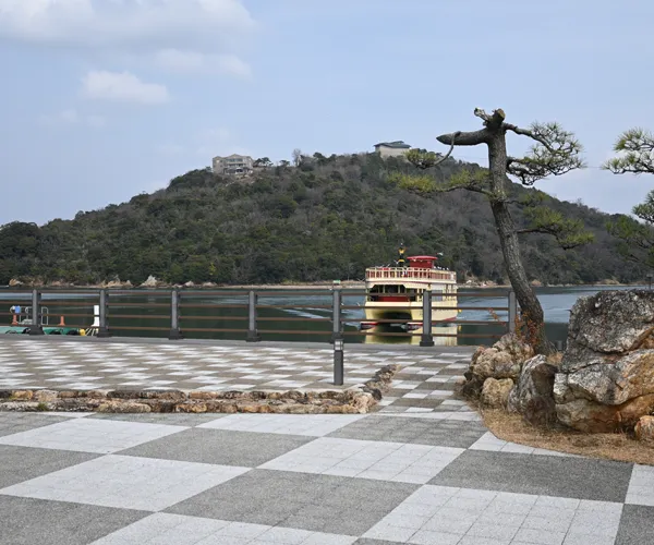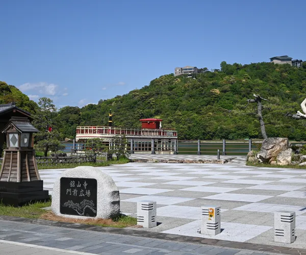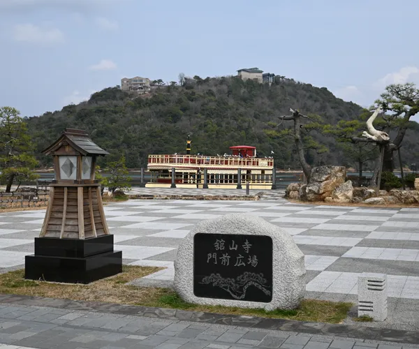 浜名湖内浦が見渡せる、石畳の美しい広場です。かんざんじ港を出港する遊覧船やロープウェイを眺めながら記念撮影はいかがでしょうか?