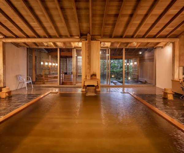 木のぬくもりを感じる当館の大浴場で、湯けむりの中、旅の疲れを癒やし、都会の喧噪から離れて心から解放された気分にひたってください。