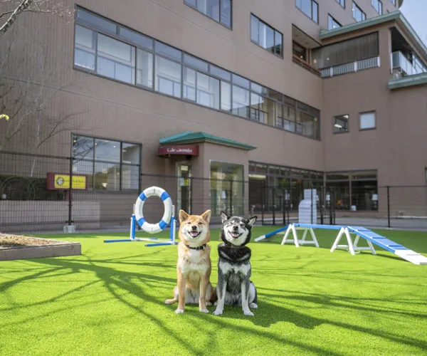 ブルーの人工芝が特徴の屋外“dog park 夕凪”や中庭にある“dog park”、天候を気にせずにご利用いただける屋内プレイスペースと3つのあそび場をご用意。